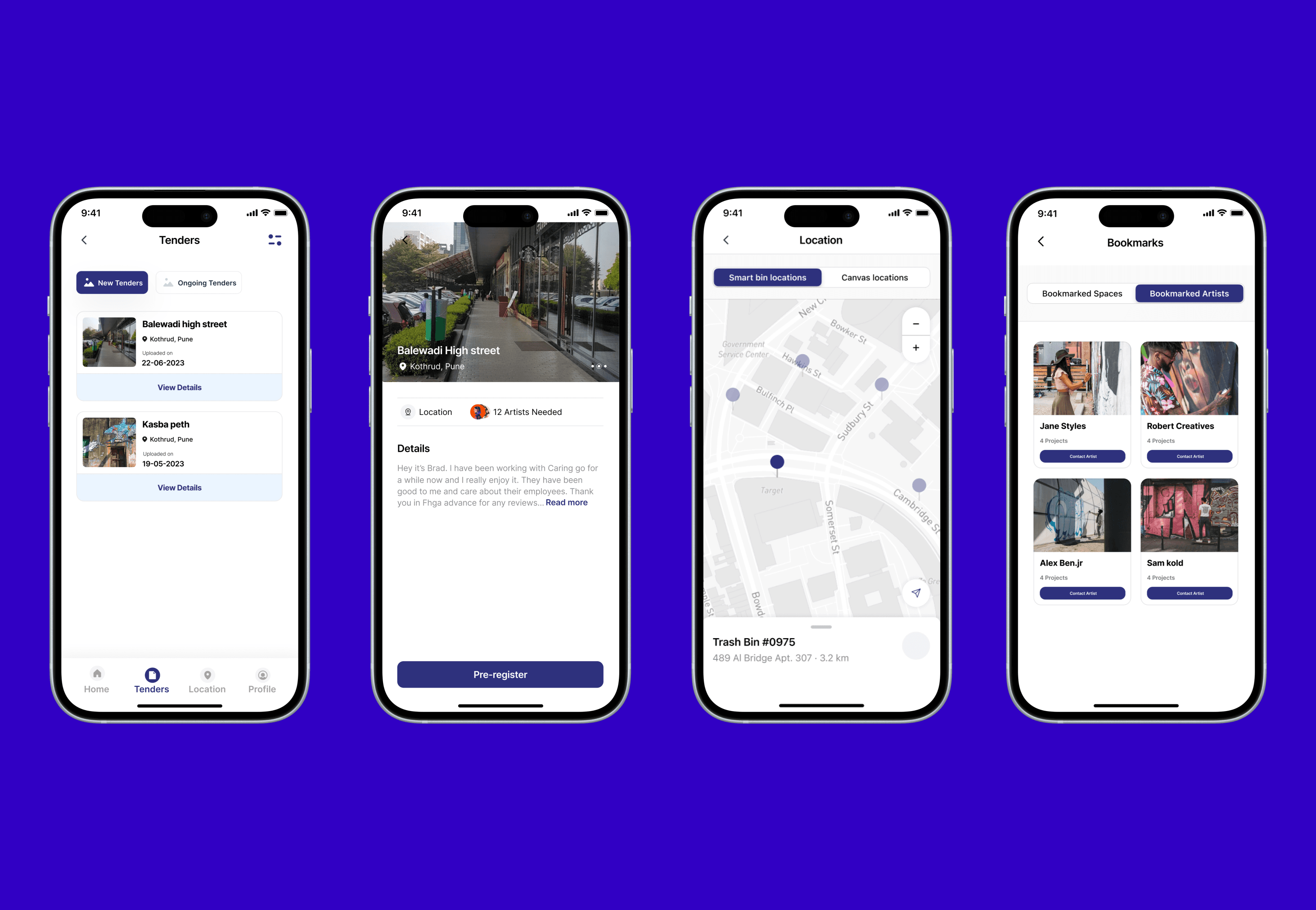 Space Discovery and Networking: The design includes a feature for users to discover available public spaces that allow art installations and to network with other artists and local authorities, creating a collaborative community.